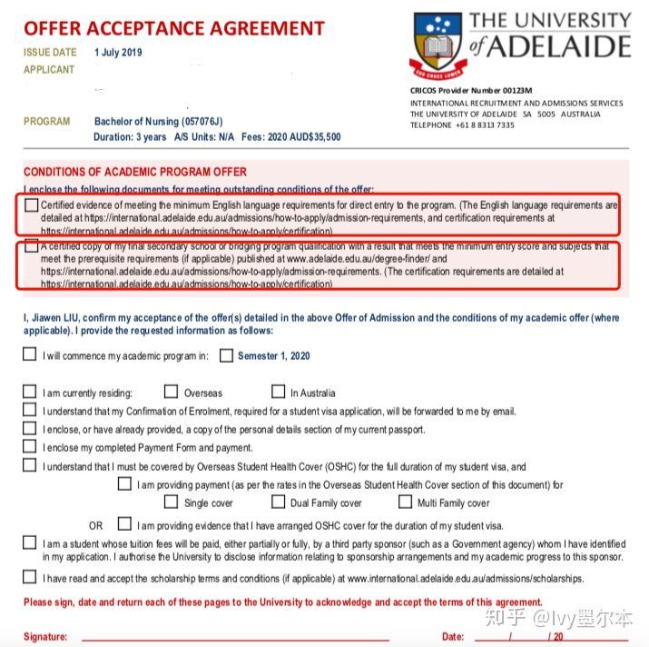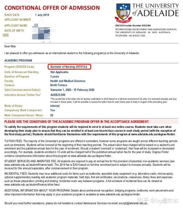 通过学校的offer, 我们可以看出来其实最大的困难就是语言要求,而且阿德莱德大学的护理本科是不给配语言课的。