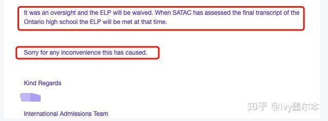 但是学生情况特殊⚠️⚠️,学生是国际学校读的加拿大国际课程,之前大部分相同背景的学生申请澳洲学校都是不用提供语言成绩,所以Ivy特别跟阿德莱德大学沟通,申请豁免语言要求。请看下图学校的答复: