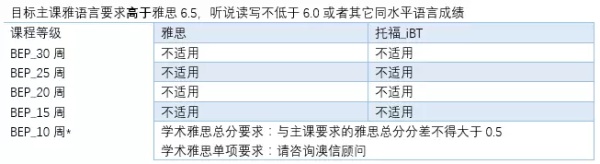 这个课程最大的优势就是,只要达到了课程内部的期末考核要求(BEP Exit Requirements)就不用考雅思了,可以直接入读主课学习(简称直升班)。