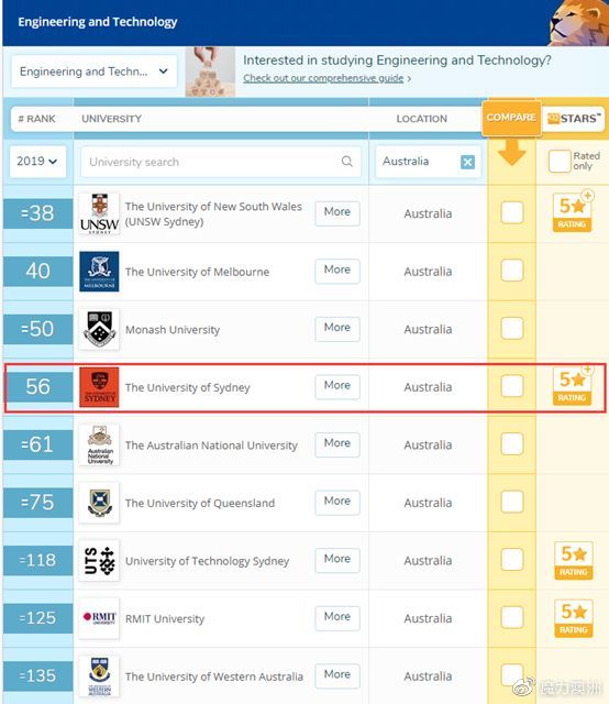 悉尼大学工程学院QS排名
