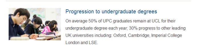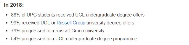 升学率:50%的预科生都能升入UCL本科,另外30%进入了其他G5院校。