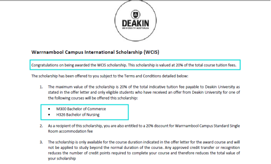 申请迪肯大学Warrnambool 校区的护理专业,可以获得20%的学费和住宿费减免,如果是来自Warrnambool的姐妹城市-中国长春的学生,可以获得25%的学费和住宿费减免!