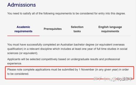 4.RMIT社工硕士有明确的申请提交时间,申请需要在11月1号之前交上去, 第一轮审理发offer会在11月中下旬出结果。
